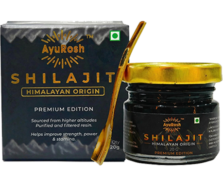 AyuRosh Himalayan Shilajit – purified resin to naturally boost strength, stamina, and vitality. Sourced from the highest Himalayan peaks for pure, potent energy.