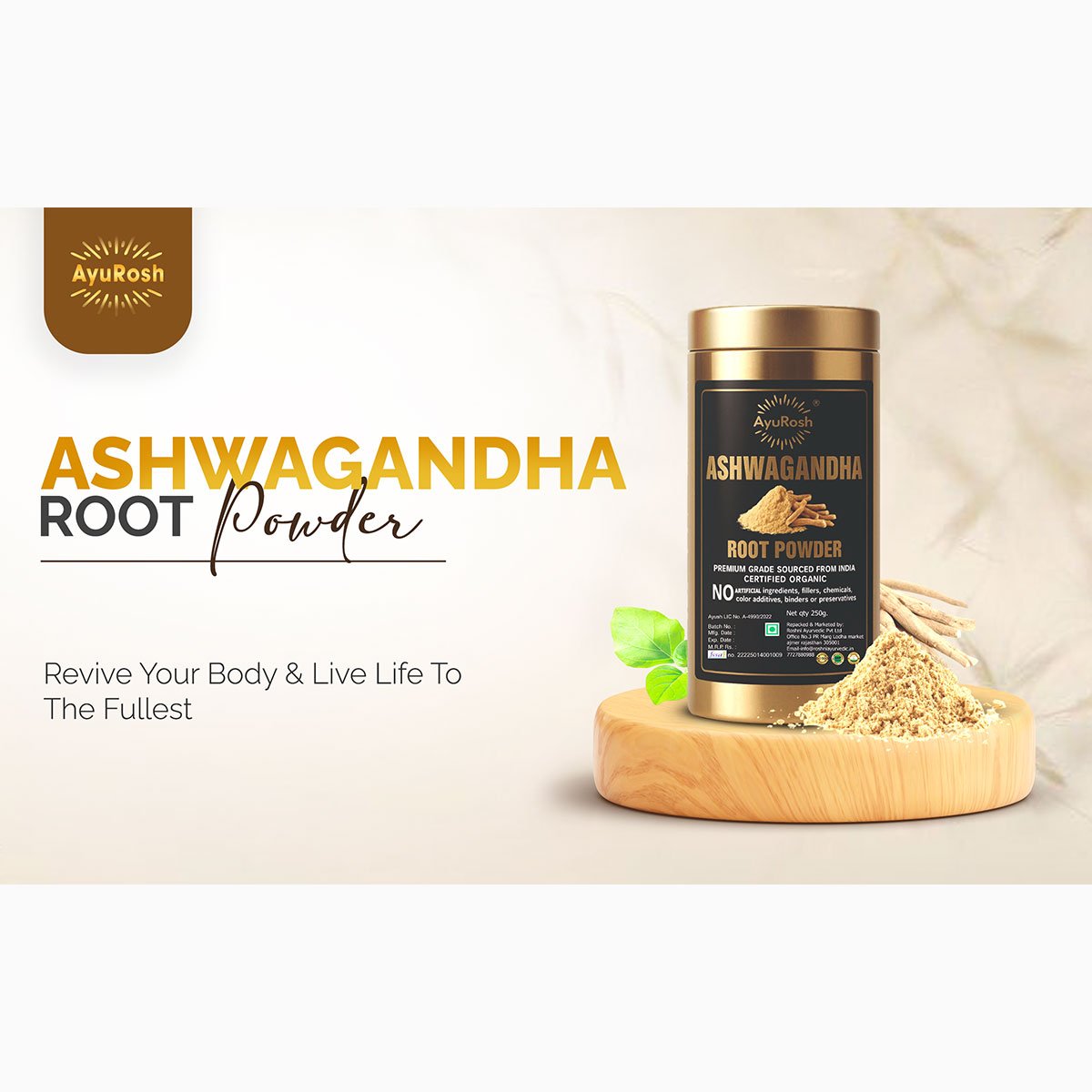 AyuRosh Ashwagandha Root Powder – Premium Organic